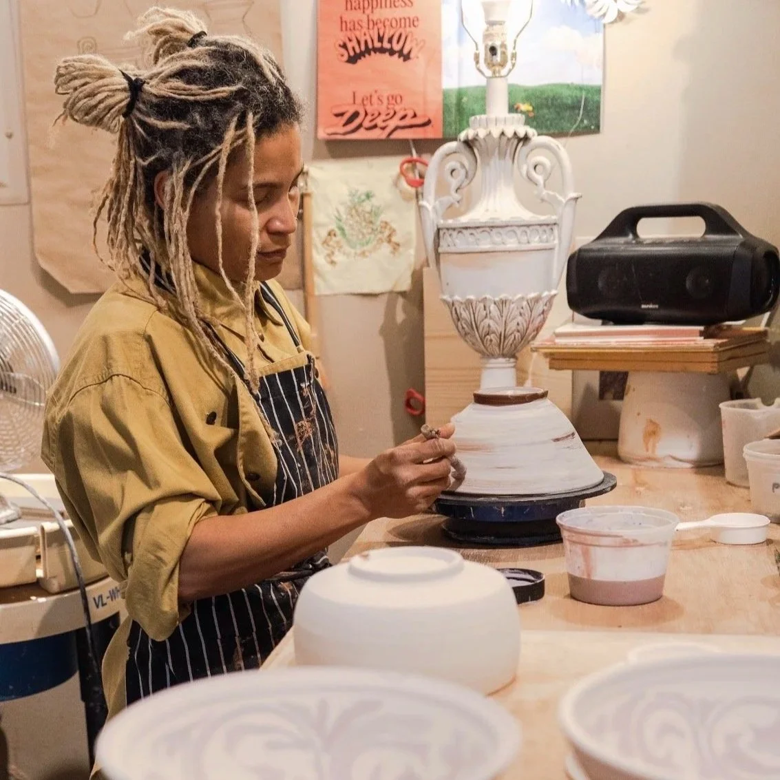 My work is inspired by the Ceramics I was exposed to in Mexico ( where I was born and raised) and by the experience of living at a Craft Community in Upstate New York where my brushwork developed by learning Folk Art Turkish motifs taught by an older Turkish man and by my travels and residencies. My inspiration for surface and firing techniques are often based on pieces I see in museums ( wether consciously or unconsciously) . I feel deeply connected to shapes and surfaces that can draw attention to the human touch and craftsmanship.